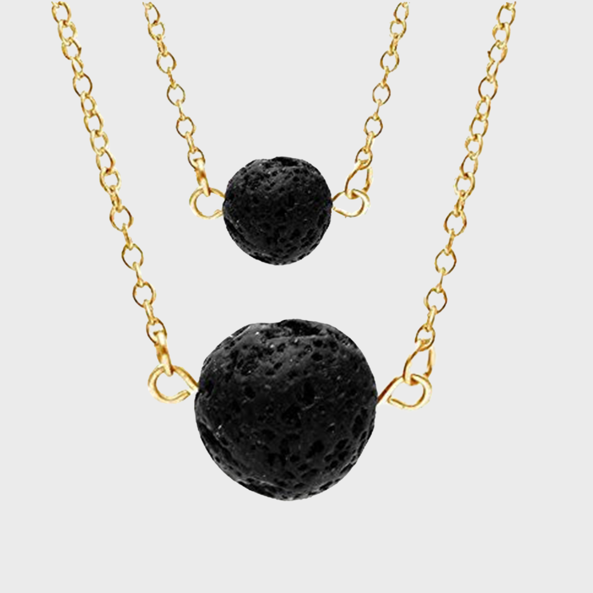 A beautiful lava bead pendant necklace with adjustable length. This great necklace has two lava stones on a gold plated chain, enabling you to diffuse your essential oils and get the benefits all through the day whilst looking stylish and glamorous.