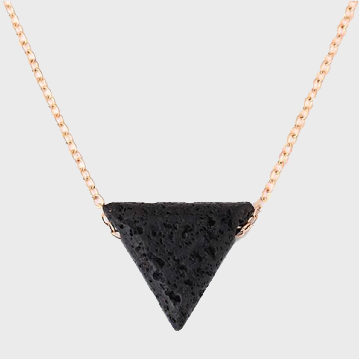 A beautiful lava bead pendant necklace with adjustable length. This great necklace has a triangle lava stone on a gold plated chain, enabling you to diffuse your essential oils and get the benefits all through the day whilst looking stylish and glamorous.