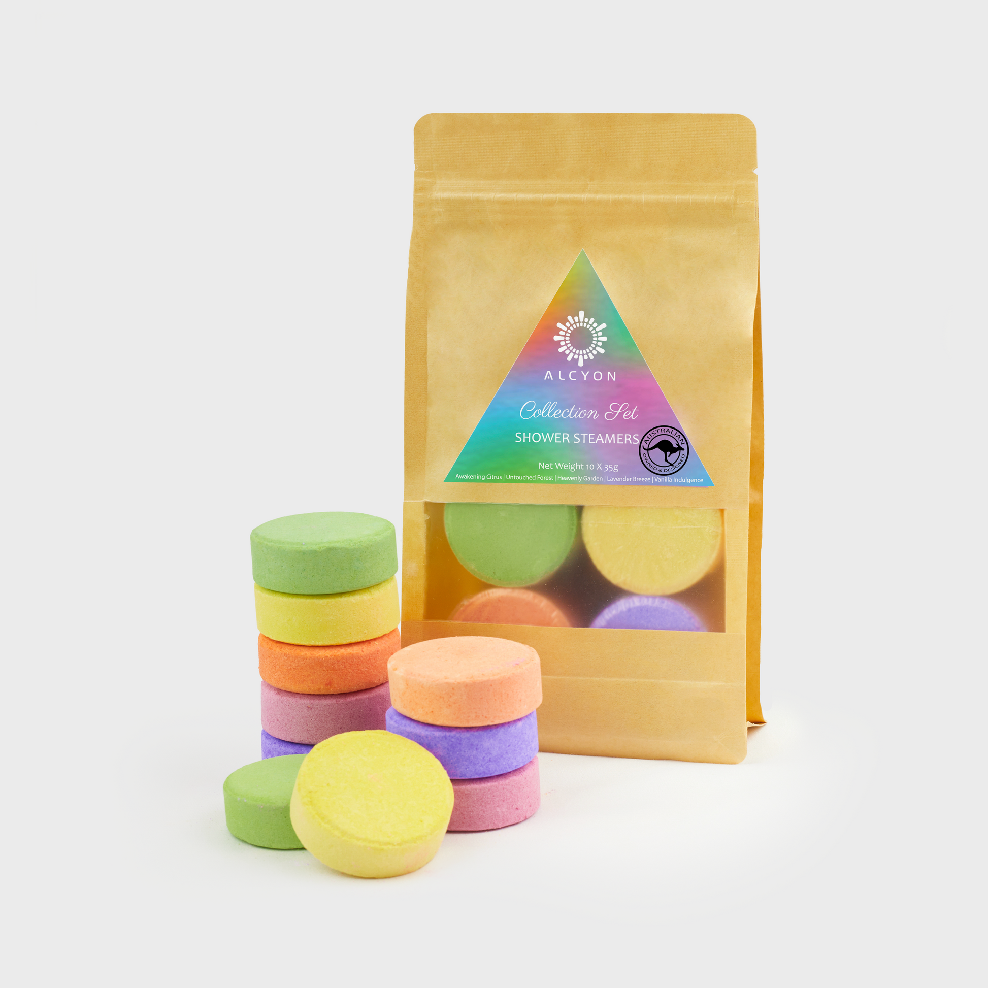 This set includes ten handcrafted steamers, each designed to transform your shower time: